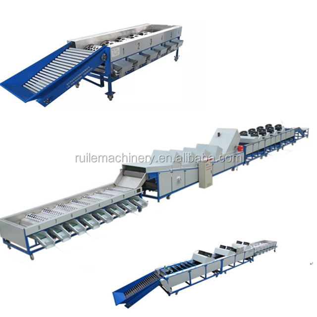 This grading machine can also have washing, drying, waxing function function. It can garde 3-9 different size. Capacity from 3-9t/h.