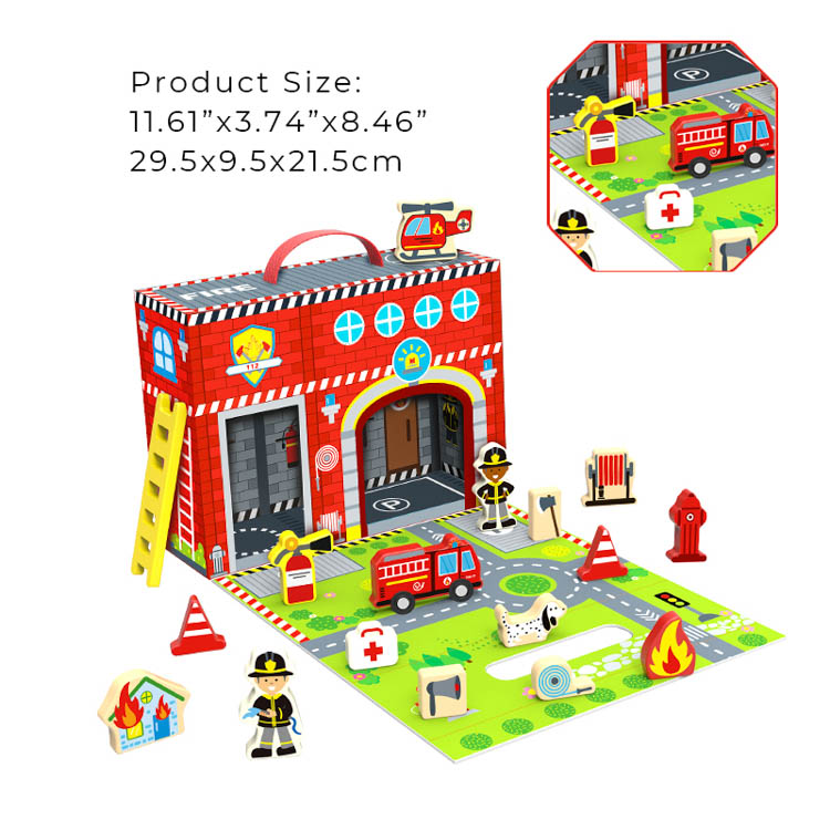 2020 New Design Kids Wooden Educational Fire Station Story Box Toys