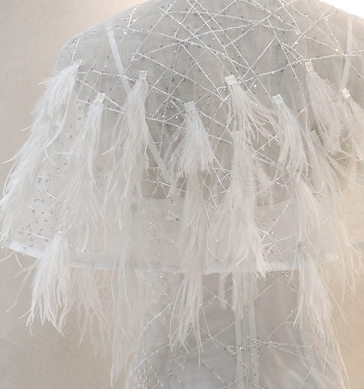 Feathers decorated near the knee part to the swing,showing fluid and fairy temperament.