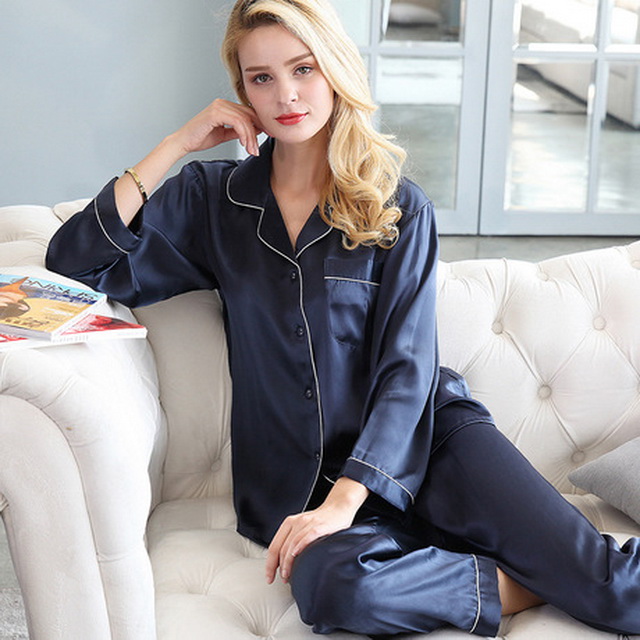 New design trendy long 2pcs set women's 100%silk sleepwear.