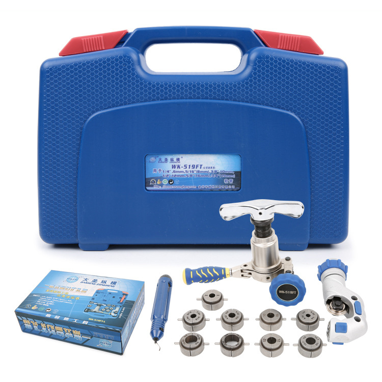 WK-519FT | For inch &metric:1/4″,6mm,5/16″(8mm),3/8″,10mm,1/2″,12mm,5/8″(16mm), 3/4″(19mm),O.D.Tubing | Packed in hand carrying plastic case. | ||