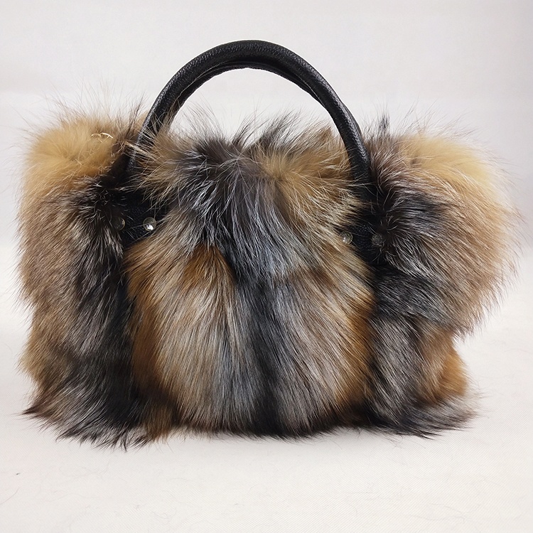Luxury Natural Genuine Fox Fur Bag Lady Handbag