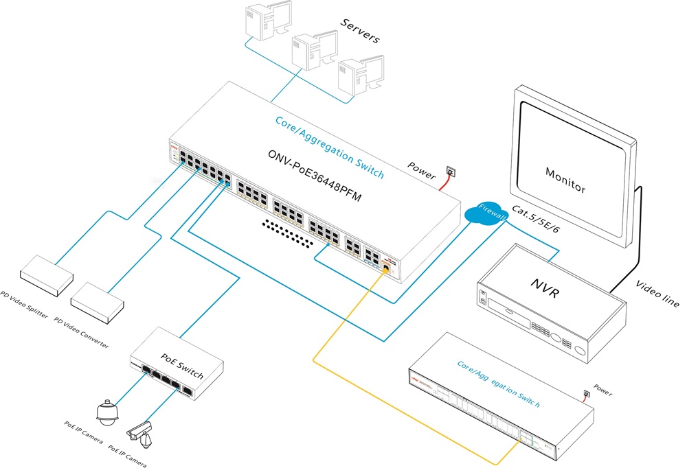 ONV CCTV System 10/100/1000Mbps 44-port 10G 2 Layer Managed PoE Switch Computer Hardware Software( ONV-POE36448PFM)