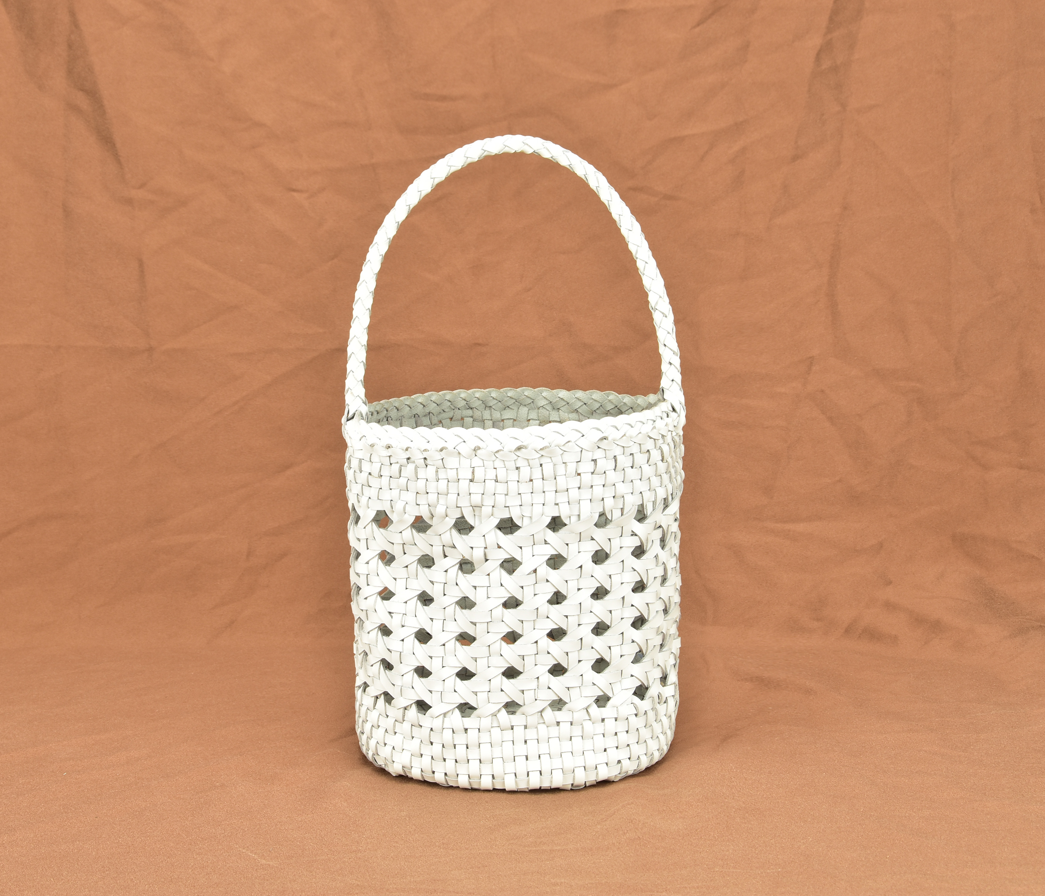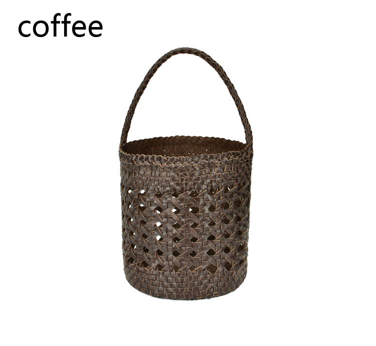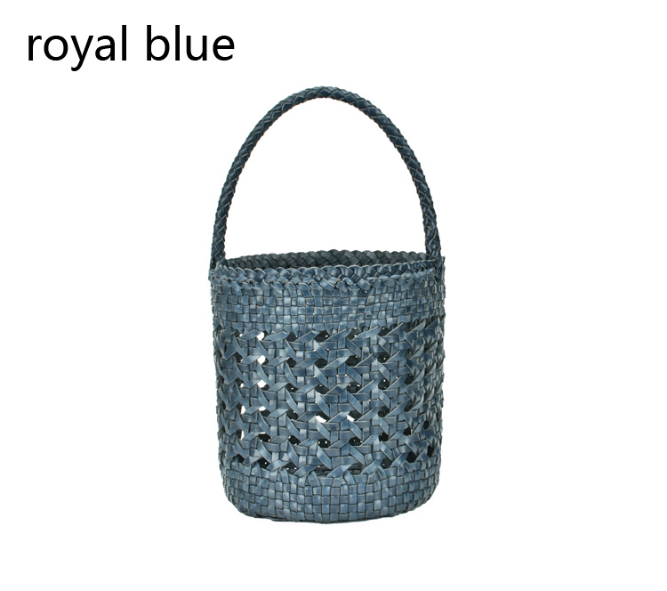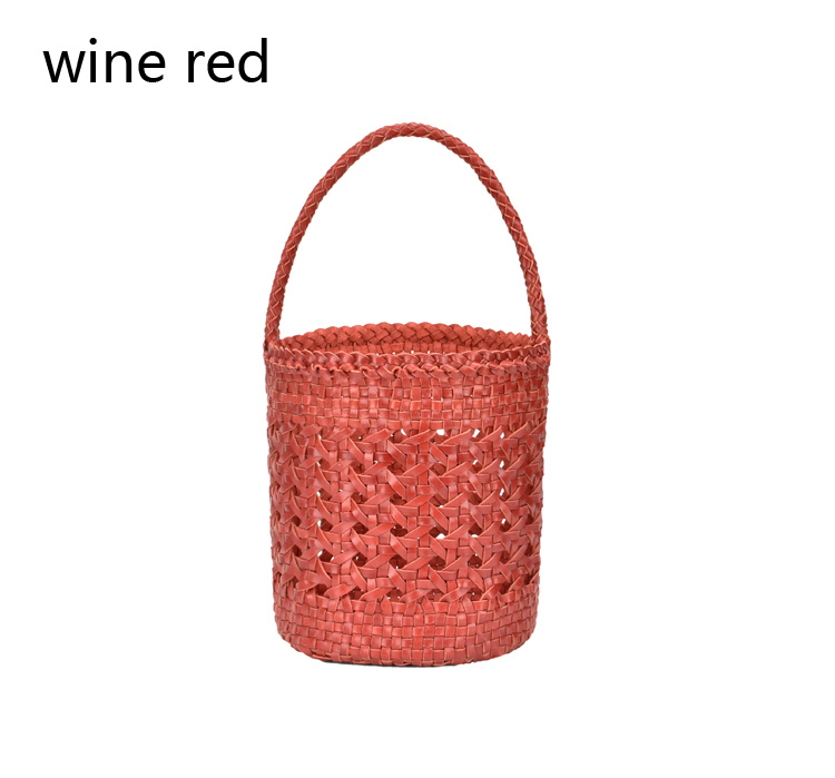 2019 High Quality Ladies Genuine Leather Woven Bucket Bag Hollow Handmade Leather Handbags