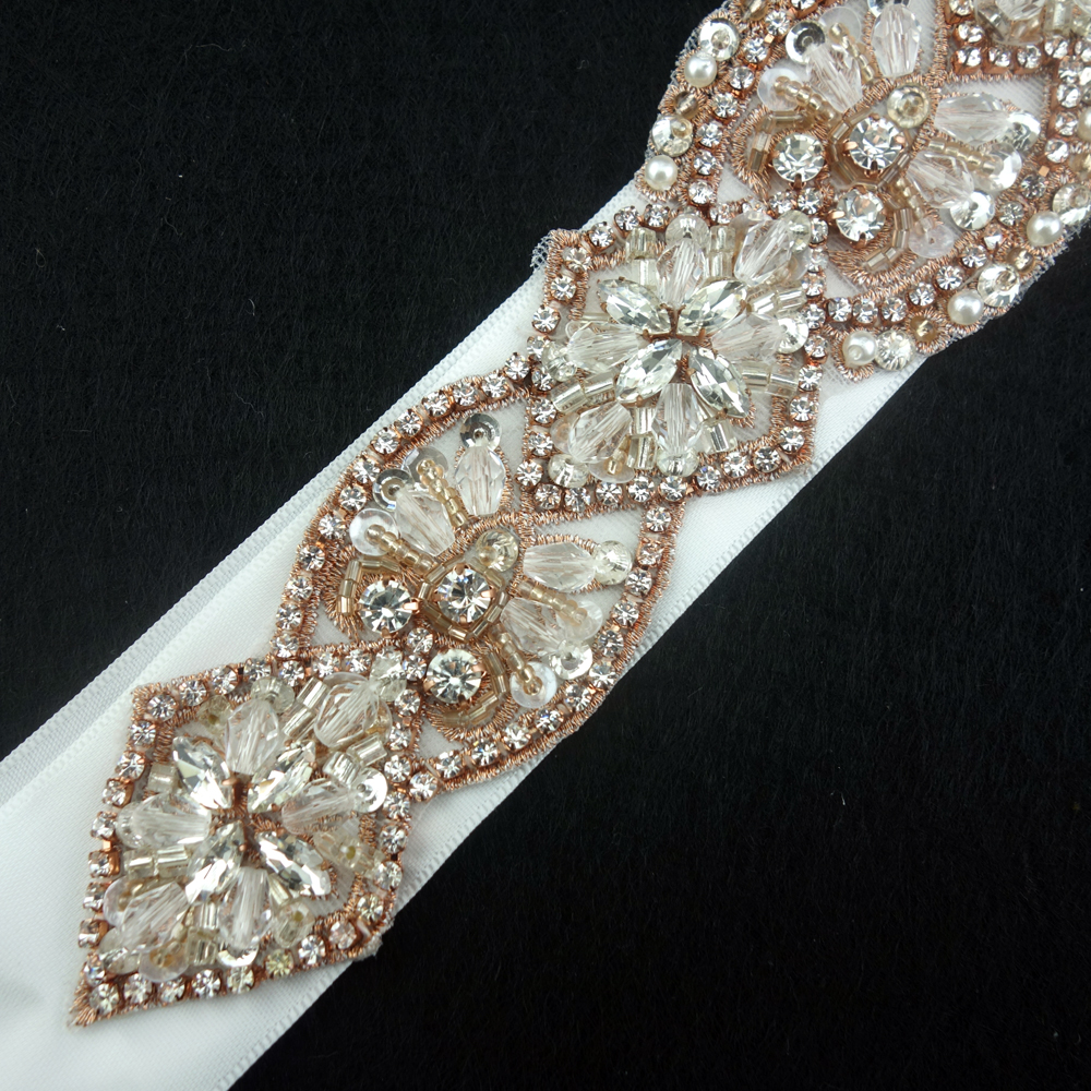 Vintage Design Rose Gold Pearl and Rhinestone Waist Belts Crystal Sashes Belt for Bridal Wedding Dresses Bridesmaid Dress