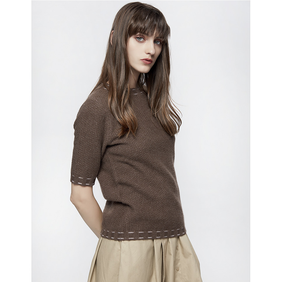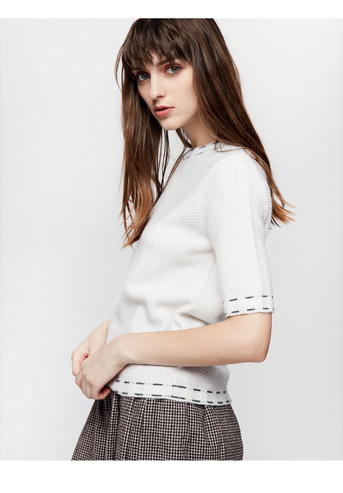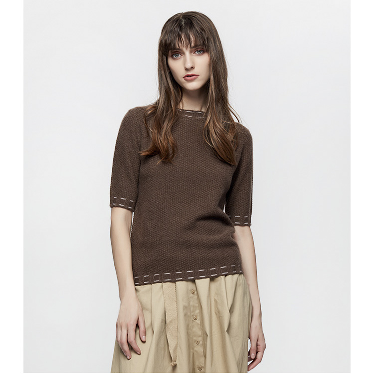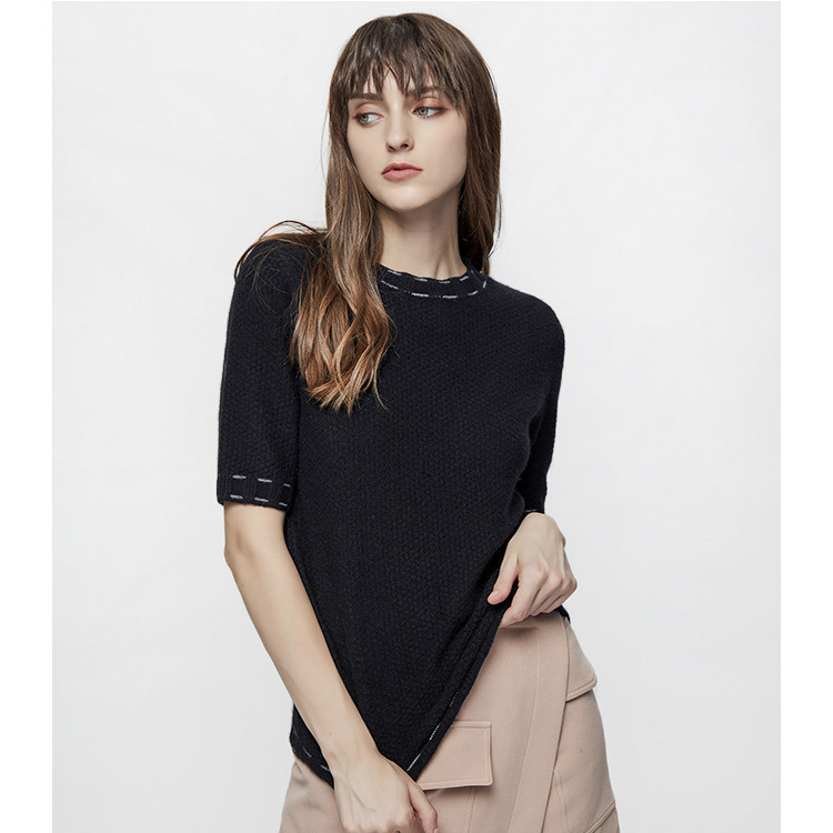 Latest design women autumn winter round neck half sleeve knit t shirt cashmere knitted pullover sweater
