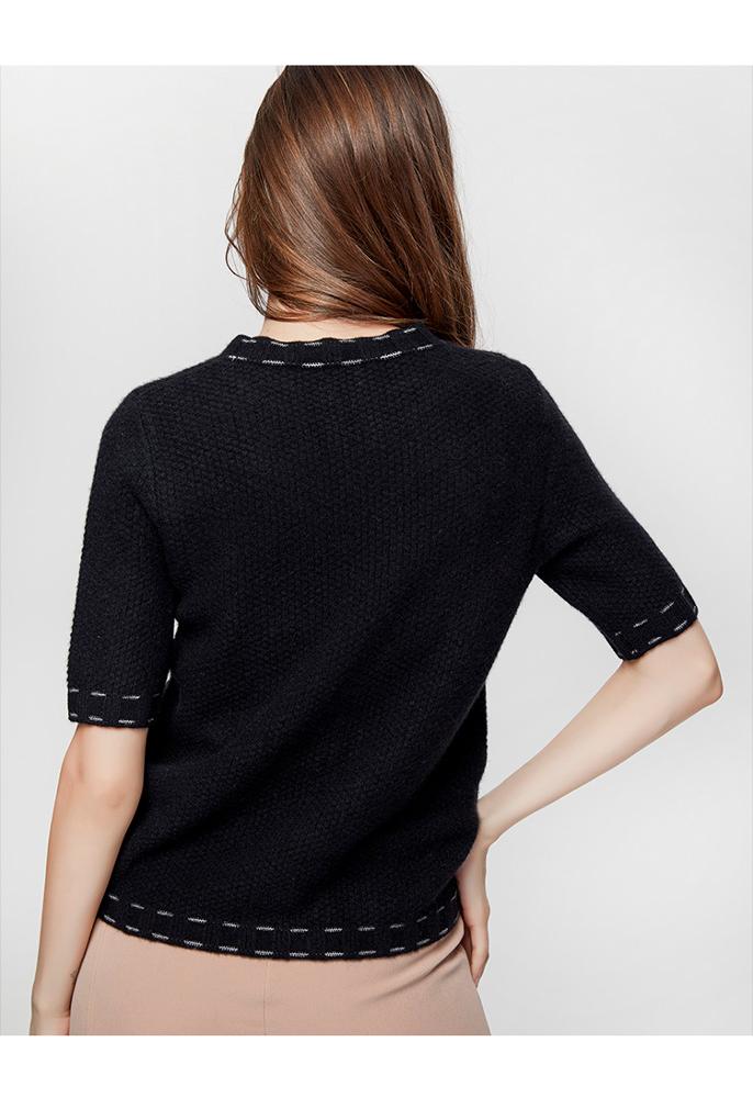 Latest Design Women Round Neck Half Sleeve Cashmere Knitted Pullover Sweater