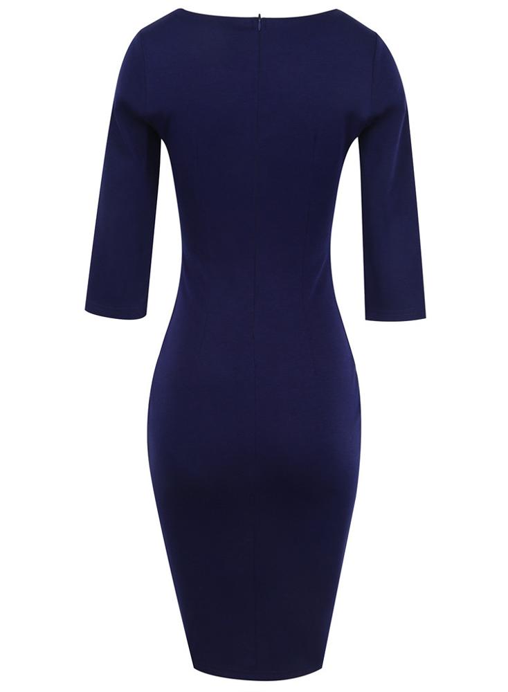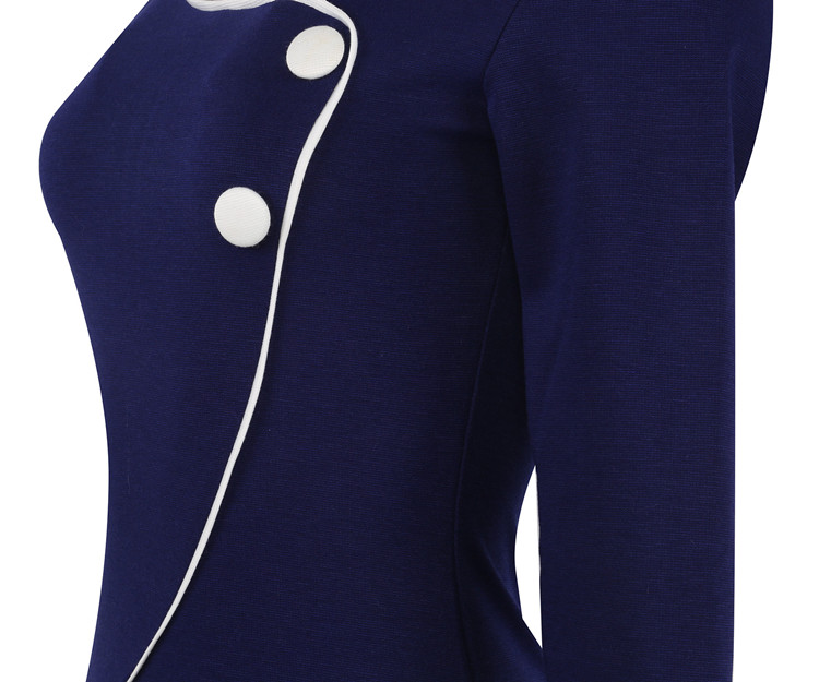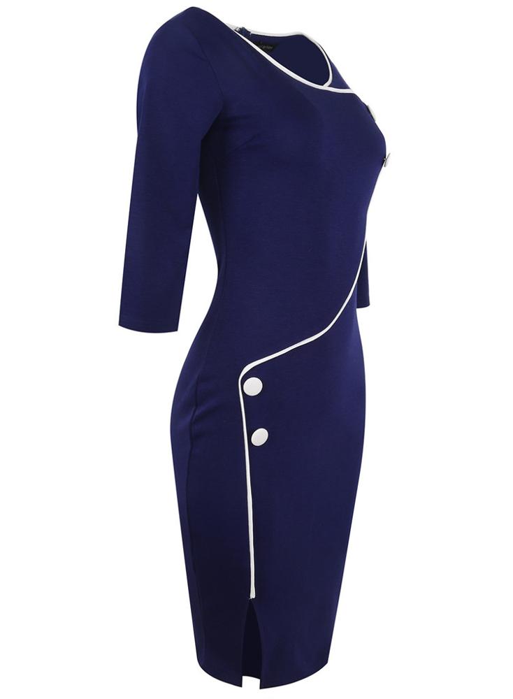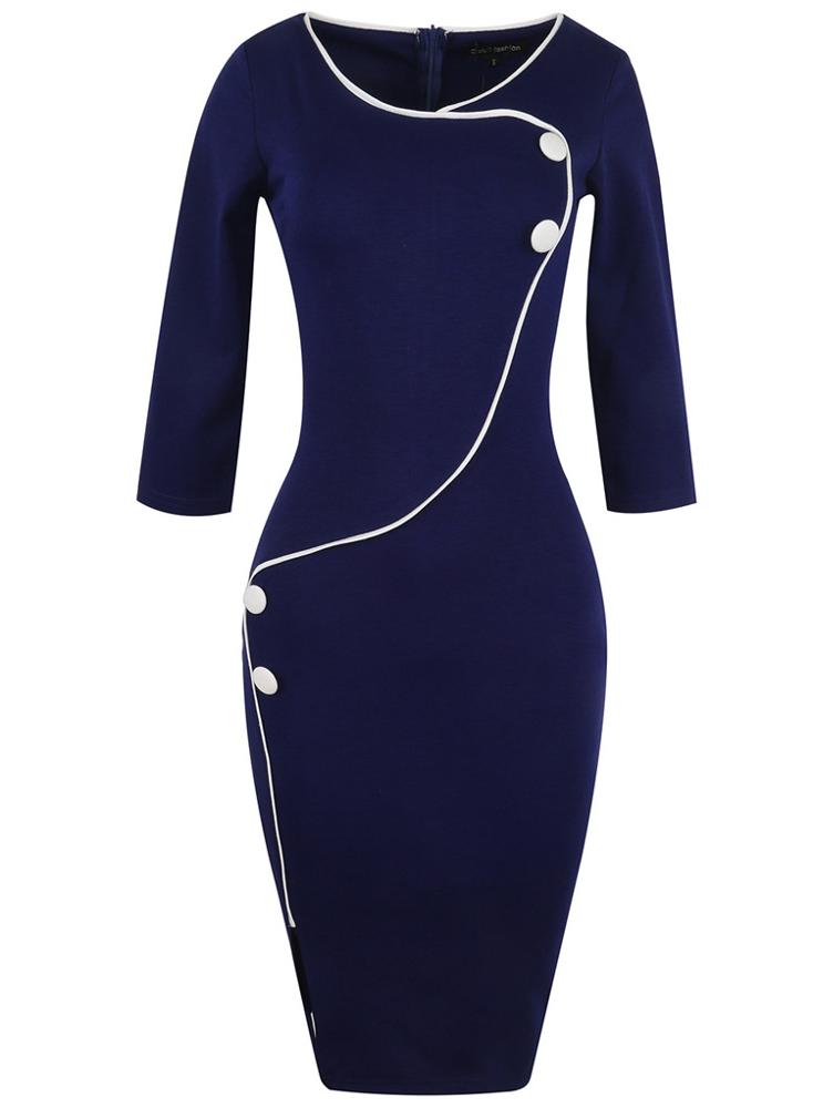 Product name | Women's fashion patchwork three-quarter sleeves button decorated commuting slim dress for work with binding edge |