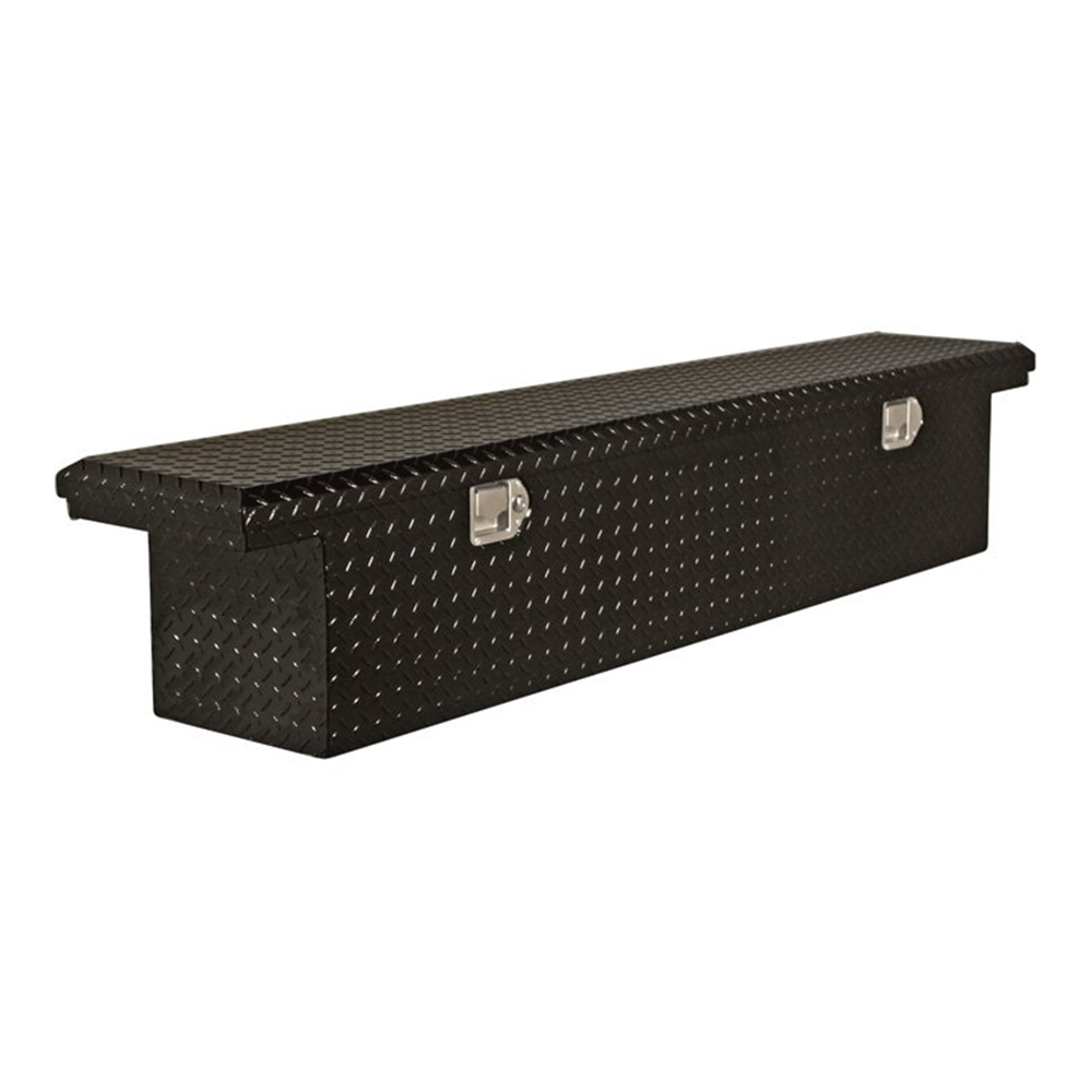 * Two stainless steel locking paddle handle latches give you the security you're looking for * Premium gas strut enables you to easily open or close the lid with one hand * Durable, abrasion-resistant black powder-coat finish