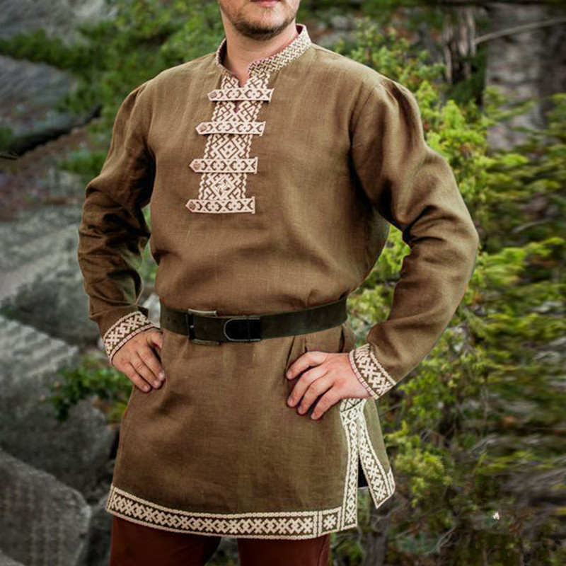Ecoparty Adult Men Cos Medieval Knight Warrior Costume Tunic Norman Chevalier Army Viking Pirate Reenactment Tops Shirt For Men