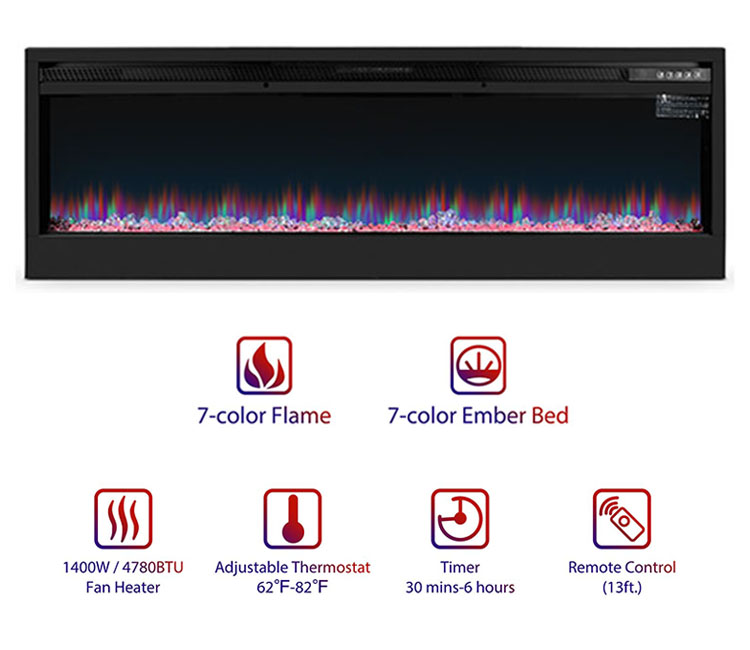 European FireplOverheat Protection Function Fireplace Built In Remote Control Big Firebox Wall Recessed Electric Fireplace