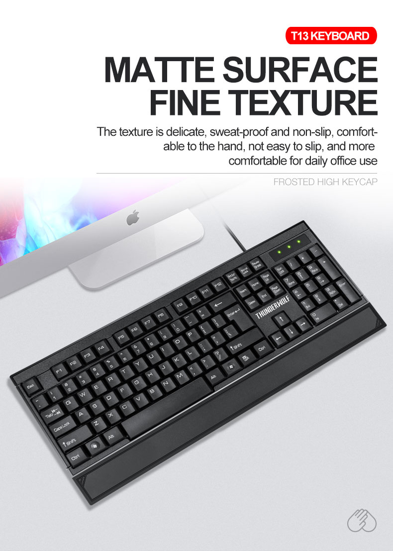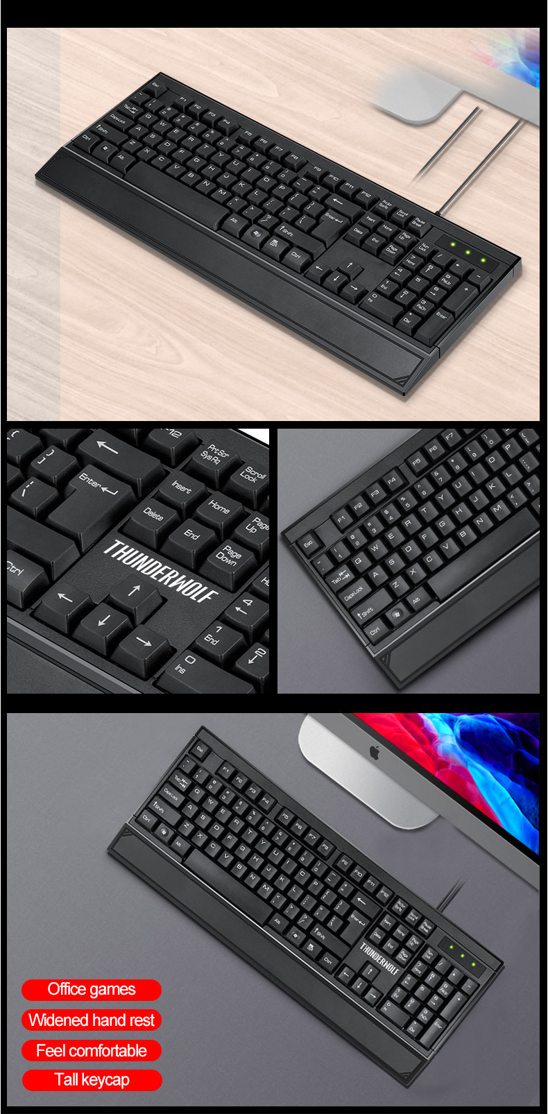 Business Durable Usb Wired Waterproof Office Keyboard Ergonimics Silent Wide Hand Rest Computer Accessories Pc Keyboard