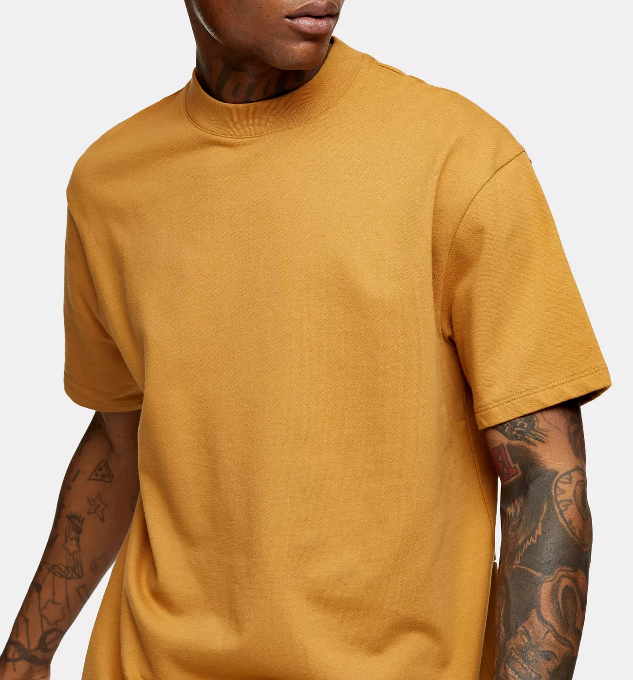 Product Details: | MGOO Yellow High Neck Solid T-shirts Men Oversized Short Sleeve Tee Streetwear Blank Cotton T shirts |