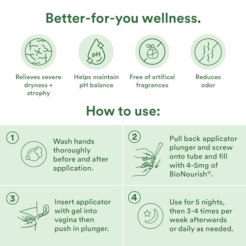 NO MORE DRYNESS: BioNourish Ultra Moisturizing Gel is scientifically formulated with key ingredient Hyaluronic Acid to instantly deliver & retain moisture and provide long-lasting dryness relief. BioNourish is water-based, hypoallergenic, and pH-balanced PREMIUM FEMININE CARE: BioNourish works to reduce dryness, discomfort, unnatural odor, and vaginal atrophy, while providing immediate & long-term hydration for the most sensitive tissue in the body. Nourish your body to live and love they way you want MADE WITH ORGANIC INGREDIENTS: Made with a natural formula, BioNourish is 100% paraben and glycerin free & fragrance-free. It's designed to help maintain a healthy vaginal ecosystem. Use for long lasting relief or as a personal lubricant for sex EASY-TO-USE APPLICATOR:We've included an easy-to-use reusable daily applicator to help you target the source of dryness and irritation discreetly and simply. Each tube includes 15 applications. 100% paraben-free, glycerin-free & artificial fragrance-free GYNECOLOGIST RECOMMENDED: With our patented Bio-Match technology, our products closely mimic your natural chemistry. Whether a lubricant, a wash, a moisturizer or suppository, they Work The Way You Do so that you can live, feel, and love your very best #16,909 in Health & Household ( ) #31 in
