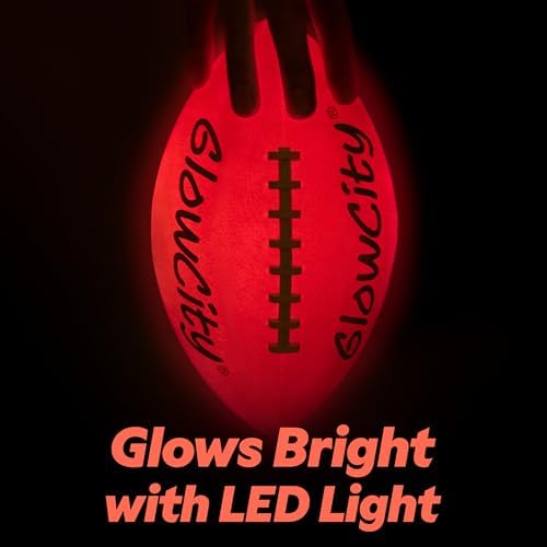 Bright - Perfect for kids, our youth sized light up football features 1 LED light for up to 30 hours of evening play on the field, at the beach, in the backyard, and even during camping. Impact Activated - Ready, set, glow! These LED football toys illuminate from the inside with a tap and automatically shut off when not in use. Durable - Each glow football sports a sturdy, water-resistant exterior and uses grommets to help keep the LED lights secured in their compartments. Setup - This LED light up football comes with pre-installed batteries. Simply inflate using a pump to start passing, punting, and scoring away. Football Gifts - If you're fumbling to find the perfect present for the young football fan in your life, our LED kids football is just the surprise your gift receiver will appreciate.