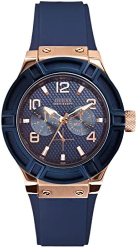 ICONIC BLUE MULTI-FUNCTION DIAL Features: Day + DatFunctions 39 MM CASE SIZE with DURABLE MINERAL CRYSTAL that protects watch from scratches POLISHED ROSE GOLD-TONE CASE WITH BLUE TOP RING COMFORTABLE BLUE STAIN RESISTANT SILICONE STRAP WITH ROSE GOLD-TONE BUCKLE CLOSURE WATER RESISTANT TO 50 METERS / 165 FEET #141,272 in Clothing, Shoes & Jewelry ( ) #294 in