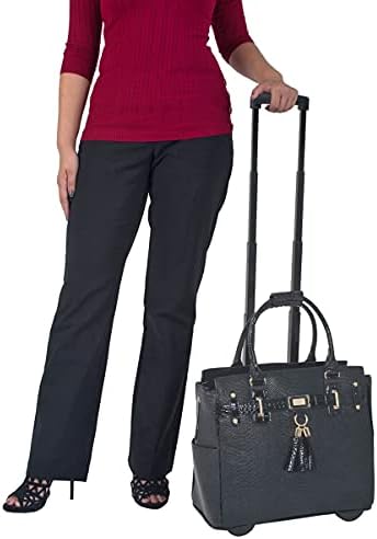 JKM & Company Rolling Laptop Bag for Women | Designer Wheeled Briefcase | Fits 13-17" Laptops | Office Travel Computer Case (Barrington)