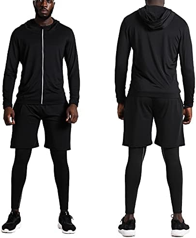 Men's Workout Set is made of 92% polyester 8% spandex breathable material, moisture wicking and dry quickly keep you cool,skin-friendly, slim-fit and tight-fitting, stretches with you with your bends,perfectly show your muscles and good figure. Men's Sport Wear Tops has pockets and hood, the zipper with reflective strip design will reflect at night and look special, the mens compression pants are designed with soft elastic waist and pockets, easy access to small items Men's Gym Clothes for fitness training, running, cycling, hiking, jogging, fishing, yoga, mountaineering and other outdoor activities, as well as some sports (basketball, soccer, tennis, boxing, etc.) 5 IN 1 Men's Compression Sets contains Lightweight Outerwear Long Sleeve,Short Sleeve ,Running Shorts,Compression Tights, super soft and smooth, extremely comfortable,BUYJYA has truly delivered on both quality and value with this compression set, but also save you the trouble of matching. Men's Workout Outfits is fast drying and quick drying, cools down when it's hot and warms up when it's cool, suitable for all seasons (indoor sports in winter), perfect for Father's Day and birthday gifts. #42,874 in Clothing, Shoes & Jewelry ( ) #1 in