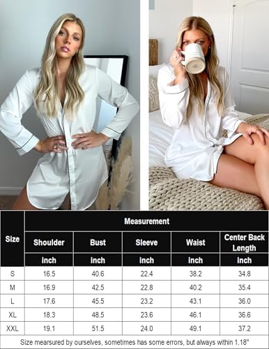 SILK SATIN NIGHTSHIRT: Made of satin fabric, milk-smooth touch makes you feel good, Ekouaer button down satin nightgown is breathable and skin-friendly, luxurious silk feel, delivering peaceful sleep and distraction-free nights to you. BOYFRIEND STYLE SLEEPSHIRT: Silk nightshirt with boyfriend style is comfy, flattery and sexy. Button-Front design is easy to adjust the V-NECK and put on; Silk nightgown with chest pockets let you stay fashionable; Long sleeve sleepshirt could be worn in any seasons. SATIN NIGHTGOWN FOR WOMEN: Simple and stylish silk nightgown, making you unwind with style in energetic. Wearing long sleeve sleep shirts, pure comfort, silky touch feeling makes you have a great sleeping time. PJ GIFT FOR HER: Silk pajama shirts nightgown is essential for sleeping every night. Bridal satin nightgown is suitable as gifts for your friends, wife, girlfriend, mom, on birthday, Mother's Day, Valentine's Day, wedding party. GARMENT CARE: For longer wearing, please reinforce the buttons before washing to avoid falling off. Recommended use a laundry bag to prevent staining womens sleeping shirts. #49,266 in Clothing, Shoes & Jewelry ( ) #240 in