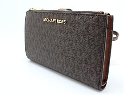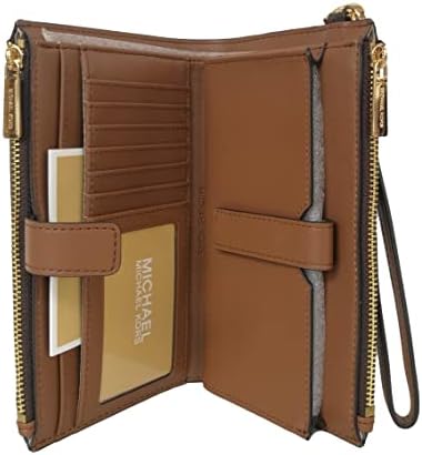 Effortlessly organize cards, cash and smartphone in glam style with this, logo-stamped double-zip wristlet wallet from Michael Kors, Approximate weight: 0.55 lbs; 6 inch L wrist strap. Two top zip and magnetic-snap tab closures. Gold or Silver-tone hardware, varies by color, Seven interior credit card slots, Three slip pockets, and one phone pocket. Fits all phone large size unto Pro Max iPhone, Leather-PVC, polyester, cotton, Trim: leather, Lining: polyester. Measurements: Length: 7.25 x Height: 4 x Width: 0.75 Inches. Comes with original tags. #59,375 in Clothing, Shoes & Jewelry ( ) #27 in #128 in