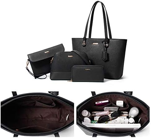 Top zipper closure. Durable and smooth. Well made: Made of good quality synthetic leather fabric and polyester lining with durable gold hardware. Dimension Handbag:12.6x10.64x5 inch(WxHxD), Handle height:10.24 inch. Messenger bag:10.24x7.29x3.74 inch(WxHxD),long shoulder strap length:49.25 inch. Wallet clutch:9.65x6.5 inch(WxH). Total weight: About 0.87 kg or 1.92 pound. Tote bag Pockets:One main zipper compartment with one inner zipper pocket,one back pocket and two slot pockets. 4pcs: One large handbag+one messenger Bag:+wallet clutch+card holder. Perfect for dating,shopping,working,traveling, vocation, party and other occasions and keep your daily items well organized. After-Sale Service: We are committed to providing each customer with the highest standard of customer service and top quality goods, if you are not satisfied with our product or service for any reason, please feel free to contact us by email. #16,342 in Clothing, Shoes & Jewelry ( ) #12 in