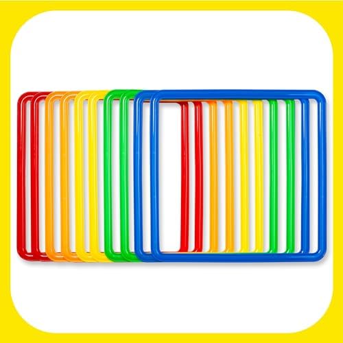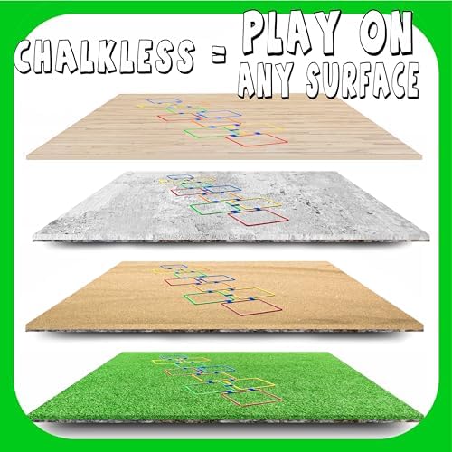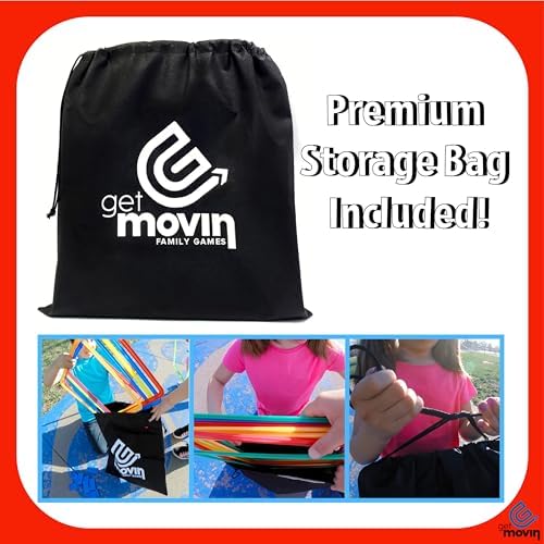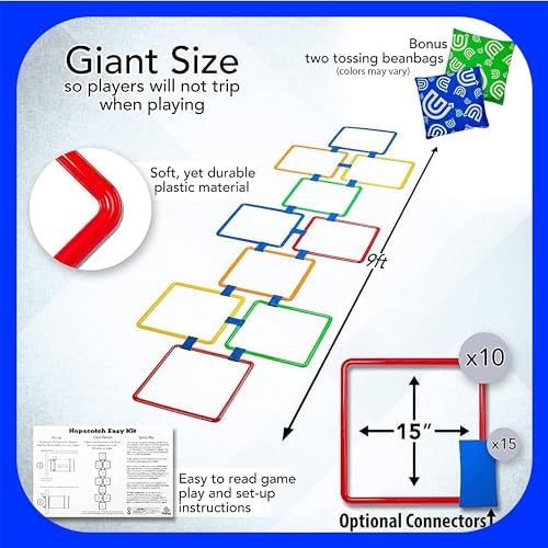 GETMOVIN SPORTS Hopscotch Squares Set with 2 Premium Beanbags Giant Sized 15 Inch Squares with 15 Connectors for Indoor/Outdoor Portable Fun Conditioning Agility Training