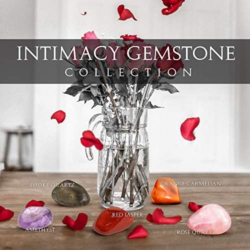 Intimacy Gemstone Kit – Set of 5 – Smoky Quartz, Red Jasper, Orange Carnelian, Amethyst, and Rose Quartz Crystals for Sex Appeal – Perfect Aphrodisiac for Increased Pleasure – Custom Satchel Included