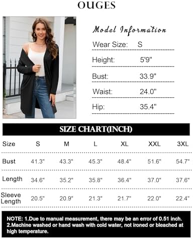 Follow Ouges,you will find your own style and be confident Long sleeve,solid,pockets,this open front cardigan will show your body lines and female curves Excellent cutting ,unique design ,you will catch all eyes on this lightweight cardigan in the busy streets or noisy party High quality material is comfortable to against your skin all day,the pockets make it easy for you to carry small items such as mobile phones This long sleeve coat will great to pair with your favorite high heels or sandals,leggings,etc.It's perfect for happy hour,date,office work,casual outdoor