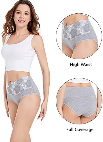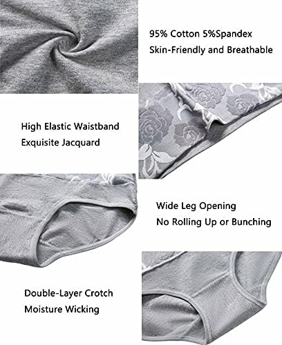 HAVVIS Women's Briefs Underwear Cotton High Waist Tummy Control Panties Rose Jacquard Ladies Panty Multipack