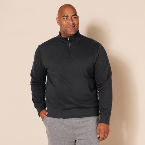 REGULAR FIT: Comfortable, easy fit through the shoulders, chest, and waist BRUSHED FLEECE: Cut from soft, brushed-back, cotton-polyester blend fleece in a midweight for staying cozy and keeping warm. EVERYDAY CASUAL STYLING: This pullover quarter-zip sweatshirt is a go-to for an easy, casual look. Match back with Amazon Essentials Men's fleece joggers for a head-to-toe cozy look or style with jeans for everyday on-the-go. DETAILS: Features a quarter-zip at front, mock neck collar, and rib trim at cuffs and hem. #396 in Our Brands ( ) #10 in