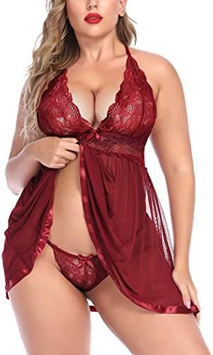 Brand: Avidlove, Material: 95% polyester and 5% spandex,this plus size babydoll is made of Ultra Soft and Elastic Lace,Stretch and Breathable mesh,Satin Trim. Design:This Mesh babydoll Sexy Backless Chemise Set featuring with sheer lace cups with a V-neck, halter tie straps, a sheer lace underbust band, a sheer mesh skirt with a satin trim, and a matching thong. Style: plus size babydoll for women.plus size women lace lingerie set, v neck chemise, halter lingerie plus size, sexy lingerie for women plus size, lace mesh lingerie sleepwear nightie, see thru lingerie for women, plus size lingerie for women for sex. Occassion: Sleepwear, Nightwear. Perfect for Honeymoon, Valentine's Day, Anniversary or every hot night, makes you more attractive and charming Package Content: 1 x Women Lingerie Lace Babydoll #9,286 in Clothing, Shoes & Jewelry ( ) #17 in