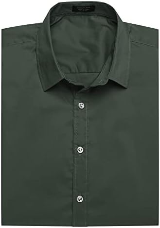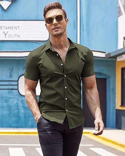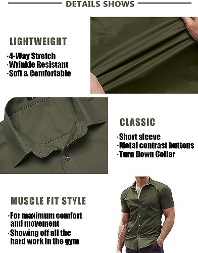 【Wrinkle-Free】 High quality woven fabric, lightweight and breathable, wrinkle free dress shirts with a clean look, keeps your body dry and comfortable all day. 【4-Way Stretch Material】4-way elastic fabric fits perfectly on all body type and allows greater mobility in any direction with no restriction, making you enjoy activewear levels of comfort and mobility. 【Fashionable Design】Men's stylish dress shirt design in slim fit, classic turndown collar, button up closure, solid color, short sleeve, metal contrast buttons, make you handsome and attractive. 【Occasions】You can pair this short sleeve button down shirts with chinos/jeans for casual daily wear, or match the stretchable shirt with dress pants for classy sharp look. This smart shirt is essential in mens wardrobe and greats for all season, Suitable for office, business, date, night out, club, travel and casual daily wear. 【Garment Care】Machine washable. ❤Please refer to our product description and following the size chart to choose one best fit you.