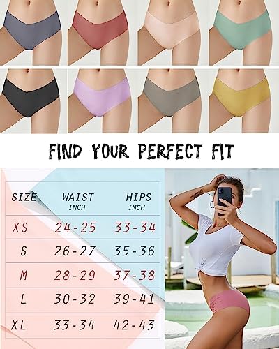 No Show Bikini Panties: [Waist Measurements]: XS = 24 - 25"; S = 26 - 27"; M = 28-29" ; L= 30-32". [Hip Measurements]: XS= 33-34"; S = 35-36" ; M= 37-38" ; L = 39-41". Seamless Underwewr: This ROSYCORAL underwear provides a seamless and no show no ride up look, which can take you through your workout and into the rest of the day comfortably, and our super soft and breathable material that stay dry and in place, you will forget they’re even there. Womens Invisible Cheeky: Made with super soft smooth fabrics (90% Nylon and 10% Spandex) and created with a two-way stretch that moves with you,plus flatters your curves. V Cut Hipster: These 9 pack low rise and no show panties created with a V cut design that sit below your belly without digging into your skin. It’s great for you to wear under legging or dress, even when you are pregnant. Womens Underwear: ROSYCORAL measurement results might different from amazon's. Please kindly refer to the size chart showed on the product image. Just choose the most appropriate size to get more comfortable style. #13,161 in Clothing, Shoes & Jewelry ( ) #53 in