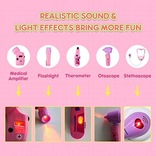 Meland Toy Doctor Kit for Girls - Pretend Play Doctor Set with Dog Toy, Carrying Bag, Stethoscope Toy & Dress Up Costume - Doctor Play Gift for Kids Toddlers Ages 3 4 5 6 Year Old for Role Play