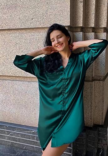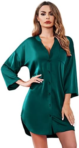 ?Material: The satin nightshirts with high quality fabric is soft, comfortable yet durable, skin-friendly and breathable ?Design: Silk sleepshirt featuring 3/4 sleeve, button down, v neck, side pocket, solid color, curved hem to make you relaxed and sexy. The front button is perfect for nursing moms, not only can protect your privacy, but also can make you more fashionable ?Botton down Sleep Shirts: Satin nightdress can be as maternity nursing nightgown. Perfect for breastfeeding, labor & delivery or nursing gown for postpartum women ?Boyfriend style: Sleepwear sexy silk nightshirts are suitable for most people's body shape,curved hem, loose fit & great length to make you relaxed and attractive ?Occasion: Pajama satin nightgowns is perfect for sleepwear, nightwear, loungwear, bride wedding, party, honeymoon nights, valentines day, date nights, bedroom, or special nights #25,566 in Clothing, Shoes & Jewelry ( ) #130 in