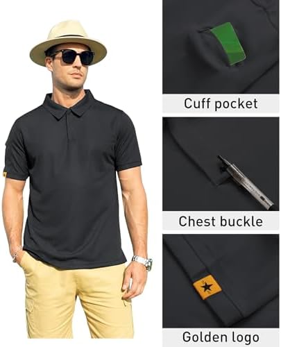 FABRIC FEATURES: Soft, Lightweight, Breathable, Comfortable. Casual Short Sleeve Summer Polo Shirts for Men UNIQUE DESIGN: Men's athletic polo shirt the ring buckle design under the placket is convenient for carrying sunglasses/microphones. Sleeve pocket design makes it easy to carry small items such as keys/headphones MOISTURE WICKING: Men's golf polo shirts are made quality four-Way Stretch/breathable and Moisture Wicking fabric helps to wick away moisture and rapid cooling technology keep you cool. A synthetic of polyester and spandex can be very durable, abrasion-resistant, and stretchy enough to allow for better mobility ALL DAY COMFORT: Mens polo shirts are suitable for various occasions such as business casual, company, work, tennis, golf, soccer, tactical training, vacation travel, daily casual, fitnes, jogging, holiday, walking, festival, football sports or four seasons all day wear. Of course these men casual stylish shirts are always the best gift for family and friends WASH TIP: Machine wash/Hand wash. Don't Bleach. Our polo shirts for men last long and well made, great value. Easy to care for, fantastic coming out of the dryer, good enough to be a golf shirt or business casual. Please refer to the measurement chart when you place the order. Click our store to view more our golf apparel #199 in Clothing, Shoes & Jewelry ( ) #2 in