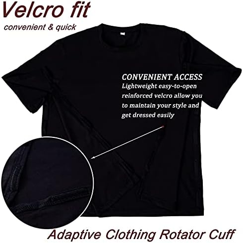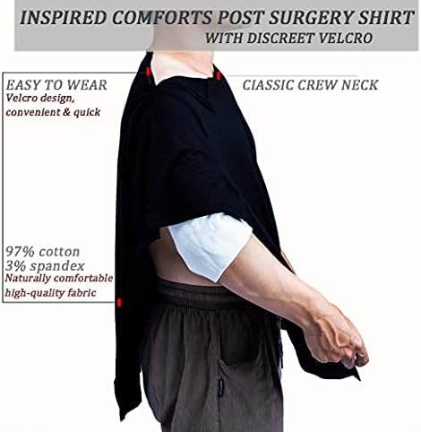 Uni-Sex Post Shoulder Surgery Shirt & Rehab Shirt with Stick On Fasteners, Convenient and Quick (US, Alpha, 3X-Large, Regular, Regular, Black)