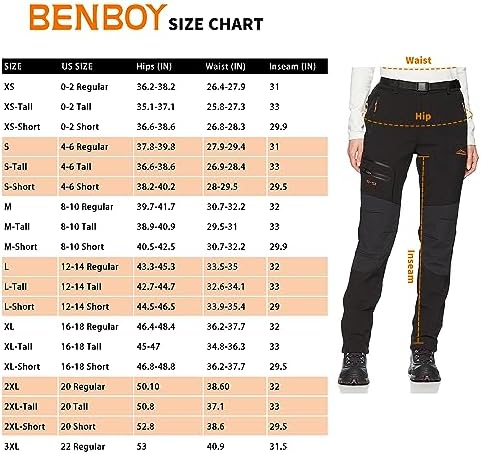Material: The hiking pants are made of 92% polyester and 8% spandex, which are waterproof, windproof, warm,abrasion resistant,no pilling and comfy. Multi zipper pockets keep your phone,keys,credit cards and other personal belongings secure. Slim fit hiking pants featuring adjustable waistband with belt,patckwork knees,steric knee darts and unique zippered cargo pockets on thigh part. Water repellent windproof outdoor pants with fleece lining,keep you warm and dry in the cold and windy weather. Stylish snow pants for women,perfect for winter outdoor activities like hiking,mountaineering,camping,skiing,snowboarding,climbing,ice sports. NOTE: Dear customers, if you have any questions , please feel free to contact us and we will provide the best solution to you. #20,258 in Clothing, Shoes & Jewelry ( ) #36 in