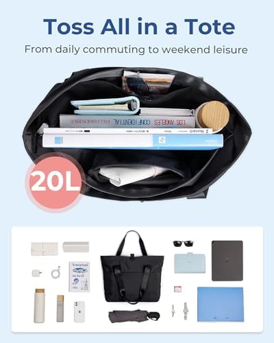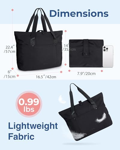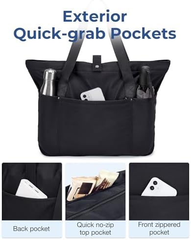 Compact Size-Unfolded: 16.5''L x 6''Wx 14''H, Folded: 7.9'' x 7''; The large tote bag can be folded into a small pouch, easy to put into your backpack, travel bag, duffle bag or suitcase, save your space. Durable Material: made of water-repellent and tear-resistant fabric. No need to worry about any ripping or tearing on the way. It has strong anti-wrinkle properties and quickly returns to flatness after being folded and opened again. Roomy Space-Capacity 20L,The women tote bag feasures 6 separate pockets; Main zipper compartment can easily hold A4 folder, clothes, etc. 2 Outer handy pockts+ 1 front zippered pocket+1 slip pocket+ 1 back pocket allow you quick access the items you need. Versatile Feature-The tote bag with sturdy handle for easy carry. With durable zippers, easy to slide and working smoothly. Occasion-It can be as work bag, gym bag, tote bag, casual shoulder bag, travel bag. Suitable for work, travel, shopping, gym and more occasion. Great Chrismas gift for girlfriend, mother. #2,863 in Clothing, Shoes & Jewelry ( ) #6 in