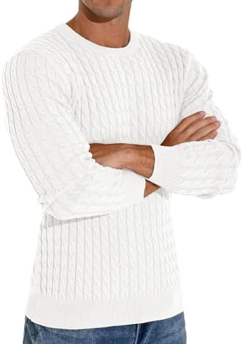 QUALITY FABRIC - This crewneck sweater made of high-quality fabric. Soft, cozy, skin-friendly, durable and stretchy. Bring you a warm and comfortable wearing experience throughout the colder days. FEATURES - Threaded crew neck/Thick knit sweater/Classic design/Elastic ribbed hem. Solid color makes these men’s cable knit sweater classic and versatile, and the striped pattern adds extra texture. MATCH - Our soft sweater looks nice on its own, and is also a perfect layer under a blazer, jacket or trench coat. You can also match this winter sweater with formal wear, casual pants and jeans to create a classic and classy outfit. OCCASION - This knitted sweater is to fit all cold occasions. Various colors and classic design makes this men’s classic sweater suitable for casual/work/home/party/outdoor and other occasions. A must for your closet. SIZE & ATTENTION - US Size & Machine washable. Please Refer to Our Size Chart in the Product Description/Picture (not the Amazon size chart) to ensure accurate fitting. We listen to customers and fine-tune every detail to ensure quality, fit, and comfort. Askdeer, just for men, and just for you.