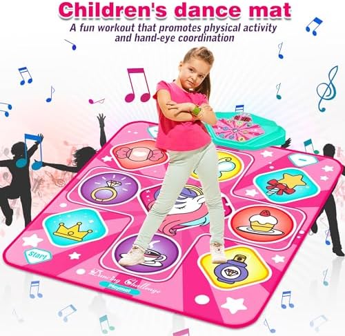 Unicorn Dance Mat, Dance Mixer Rhythm Step Play Mat, Pink Dance Pad with LED Lights, Adjustable Volume, Built-in Music, 5 Game Modes, Xmas B-Day Gifts for 3-12 Years Old Girls Toys