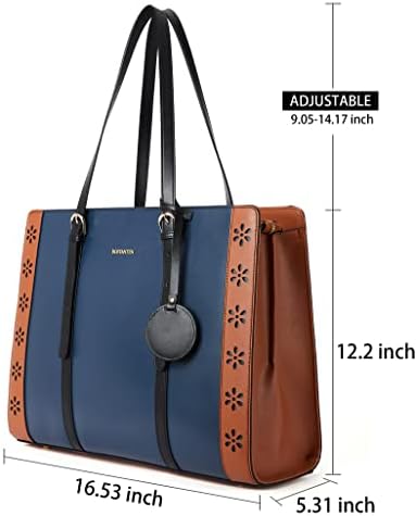 【Superior Quality】This Laptop Bag for Women is skillfully manufactured, made of top genuine leather by professional craftsmen. Durable and soft fabric lining, with golden hardware. All these highlights the high quality, modern and classic design of this briefcase. 【Dimensions】(L)16.53" x (W)5.31" x (H)12.2" with an adjustable handle, enough on your shoulder handle drop is 9.05"--14.17". Also comes with a long shoulder strap(44.8--51.18" in length) for more carrying options: Handheld/ Single Shoulder. 【Structure】The interior of the laptop briefcase includes dual main compartments with a zipper pocket in the middle and a padded compartment on the side that fits up with a 15.6-inch laptop. 1 zip pocket, 2 slip pockets, and 2 pen loops on the interior back wall. There is an outer pocket on the back, easy to access your small things. 【Attractive Design】The laptop tote bag is finely designed with flower patterns and a round leather decoration. The womens briefcase is simple, stylish, and classic in style, and soft to the touch. The large-capacity design allows you to comfortably hold a 15.6-inch laptop, iPad, wallet, cosmetics, and other daily necessities. This is a classic tote bag suitable for travel, shopping, business, or dating. 【Great Gift Idea】BOSTANTEN laptop bag is the best gift for choice, and suitable for women of all ages and styles. It provides your friend or family member with a practical and stylish gift that shows your appreciation. It makes a great thoughtful gift idea for birthdays, anniversaries, Valentine’s Day, Mother’s Day, Christmas, or any special event.