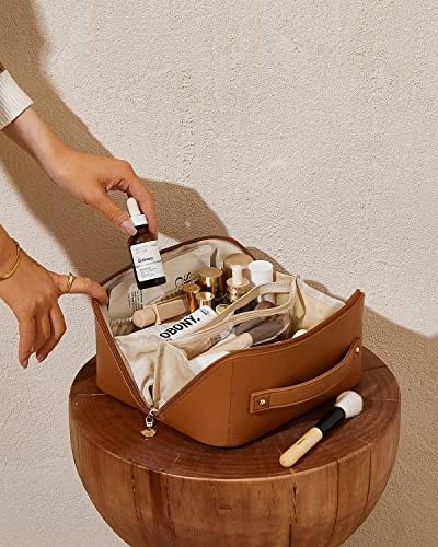 EACHY Travel Makeup Bag,Large Capacity Cosmetic Bags for Women,Waterproof Portable Pouch Open Flat Toiletry Bag Make up Organizer with Divider and Handle