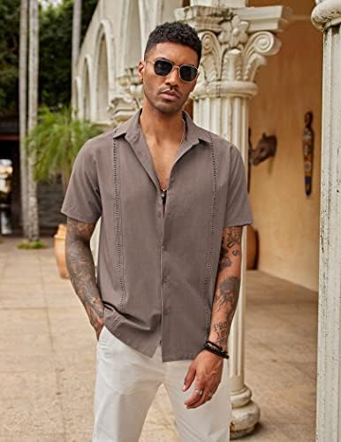 SOFT FABRIC - Men's short sleeve cuban shirt is made of Premium material that can withstand repeated washing. Soft and Lightweight material to make yourself cool, comfortable and relaxed. DISTINCTIVE GUAYABERA - This guayabera shirt features spread collar, short sleeves, solid color, buttoned placket, vertical pleats, split hem gusset, straight hem. Considerate details of design bring you pleasure wear feeling. VARIOUS OCCASIONS - Men's beach button down shirt is a great option for corporate events, friends gatherings, a dinner party with family, beach , beach wedding, yoga, work or just casual wear. CLOTHING MATCH - Men's summer button down short sleeve shirt could be easy to match with shorts, swimming shorts, jeans, trousers, a jacket or a suit. Men's casual summer shirts make a sophisticated look without ever being over or under dressed. WARM TIPS - We recommend washing the cuban shirt before use. Hand or machine wash on gentle, hang or tumble dry low. Please read our size chart carefully before ordering. #13,416 in Clothing, Shoes & Jewelry ( ) #168 in