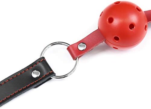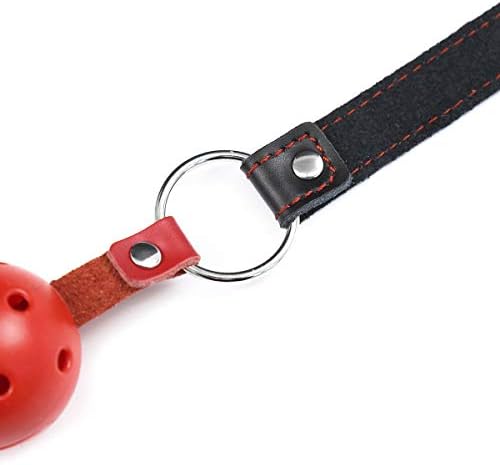 Red Ball Mouth Plug Harness Gag,Fun Products,BDSM, Fun Mouth Shackles, Flirting Adult Toys, Black Leather Hollowed Out Mouth Balls, Women's Utensils