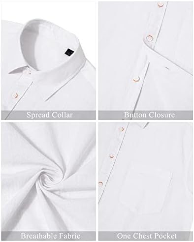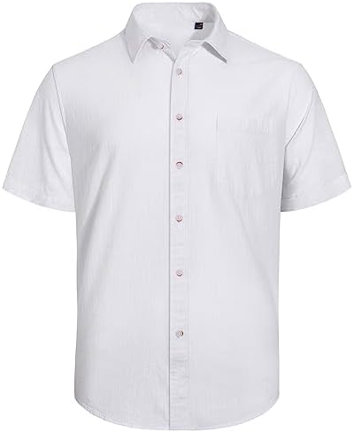 Shrink Free: The casual short sleeve shirt is made of high-quality cotton and linen fabric with anti-shrink treatment, soft and comfortable,easy to iron, lightweight and cool,good breathability, take away the stuffiness, and give you a better wearing experience Unique Design: 1. We offer solid shirts in a variety of colors. 2. One chest pocket makes it easy to store small items. 3. Classic design--spread collar, button closure placket. 4. Extra button--Cotton linen short sleeve shirts are sewn with an eighth button, which you can use if needed Easy to Match: We offer you a wide range of sizes and colors to meet your different needs. Men's cotton linen shirt sizes are standard US sizes, easy to match with various bottoms. Please refer to the size chart image to choose the size that suits you Applicable Occasions: Mens casual cotton linen shirts are perfect for summer, vacation, beach, party, tropical, wedding, date and other daily wear. In everyday casual dressing, men's short sleeve shirt will always show off your charm. It is also an ideal gift for husbands, fathers, sons and friends Dry, laundry or handwash are available, low iron if necessary #1,194 in Clothing, Shoes & Jewelry ( ) #16 in