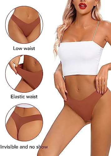 Flaunt Your Curves with High-Waisted Seamless Thongs: Our V-waisted design is not only sexy and fashionable, but it also visually stretches your body for a flattering look. Perfect for all seasons and occasions, whether it's sports, workout, daily wear, party, or wedding. Soft and Breathable Fabric for All-Day Comfort: Made of polyester and spandex, our seamless thongs are like a second layer of skin that meets the picky requirements of your butt for comfort. You can wear them all day long without feeling uncomfortable. No More Panty Lines with Our Invisible Thongs: Our no-show thongs are perfect for tight-fitting pants or skirts, as they avoid the embarrassment of underpants sticking out. They are low-rise, so they won't slide, curl, or tighten your legs, making them perfect for low-cut jeans, pants, or dresses. 6-Pack in Multiple Colors to Match Your Bra: Our package includes 6 seamless thongs With multiple colors to choose from, you can easily match them with your bra and meet your daily needs. Because long-term wearing of bacterial odor is not conducive to the health of your private parts, and the function of washing fabrics many times is impaired and uncomfortable, it is recommended to replace the underwear after about 3 months. #464 in Clothing, Shoes & Jewelry ( ) #4 in