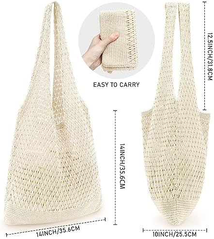 Material: This crochet beach bag is made of high-quality, lightweight, and durable material. And knit tote bag is fold and soft, it’s portable for women and not add burden. The summer tote with mesh design that sand easily fall through. Cute Beach Bag: The grunge fairycore style bags are not only perfect for seaside holidays and vacations but also attract a lot of attention in daily life. This small beach bag with durable sewing and exquisite workmanship, fashion and practical, is popular with women Summer Accessories: The solid colors design adds delicacy and trendiness to the crochet tote. It is not just a summer tote bag but also a decorative work of art, making you more fashionable this summer. The beach bags for women is perfect for various occasions such as the beach, parties, shopping, and dating. Large Capacity Knit Beach Bag: The crochet purse has ample space to hold an iPad, wallet, A4 magazine, cellphones, umbrella, sunglasses, slippers, cosmetics, and more. The cute tote bag size is 14 x 10 x 26.5in/35.6 x 25.5 x 66cm(including handle length), will keep your stuff safe and bring more convenience Tote Bag Aesthetic : The retro and casual style boho tote bag has a simple and leisurely style, the beach bag tote is suitable for tourism, shopping, beach and summer vacation. The cute tote bags aesthetic feature with vintage style, also as an ideal gift on birthdays, holidays, weddings, valentines or other important days #2,918 in Clothing, Shoes & Jewelry ( ) #16 in