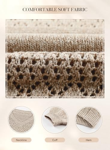 SHEWIN Womens Sweaters Casual Long Sleeve V Neck Lightweight Crochet Pullover Sweater Tops