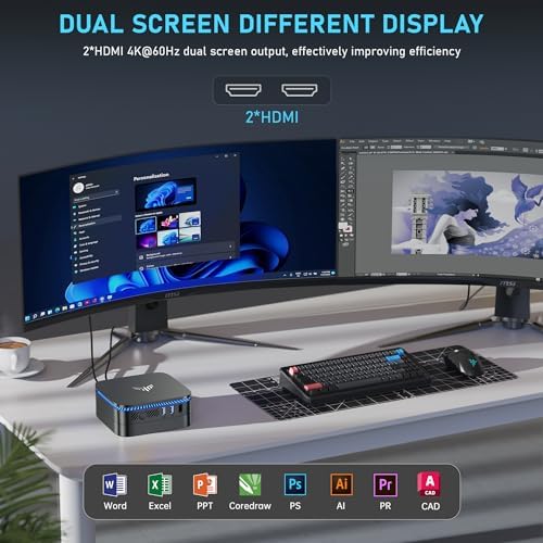 【Powered By Alder Lake N95】 KAMRUI AK1PLUS Mini PC features 12th generation N95 Processor (4C/4T, 6MB Cache, base frequency 1.7GHz, up to 3.4GHz). The performance of N95 (10nm) is even 30% better than that of N5095. Whether you need a robust home server, a versatile tool for school education, seamless web browsing, or even efficient business office tasks, the KAMRUI Mini PC with exceptional capabilities is up for the challenge easily 【Ideal For Multitasking】The mini computer has equipped with 8GB DDR4 and 256GB M.2 2280 SSD. Sufficient capacity allows you to get rid of the trouble in multitasking. Capacity upgrade options: 1) replace the M.2 SSD up to 2TB. 2) add a 2.5-inch SSD/HDD up to 2TB(Above not include). Smooth processing speed and powerful features double your work efficiency 【Immersive 4K Ultra HD】The small desktop computer comes with UHD Graphics (Up to 1200MHz), shared graphics works well for photo editing, creative work and video playback. With maximum resolution 4096x2160@60Hz, how wonderful that turn it into your home theater center or connect to a projector while camping. Dual HDMI allows you to connect two screens simultaneously to increase your productivity. Ultra-high-definition video output makes your life and work full of joy 【No Latency Connection】AK1PLUS desktop pc designed with HDMI 2.0 Type A X 2, USB2.0 X 2, USB3.2 Gen 2 X 2, RJ45 X 1 and 3.5mm Audio Jack X 1. Gigabit Ethernet and 2.4G/5G dual band WiFi, providing high-speed transmission and download, refuse to freeze. Bluetooth technology can easily and stably connect additional devices in the range of 10 meters, such as keyboard-mouse combo, speaker, microphone, etc. Multiple sockets are available to fully meet all your needs 【Small But Powerful】The body size of the small form pc is 5.04 X 5.04 X 2.05 inch. The unlocked BIOS supports auto power on/RTC/wake on lan setting, With the VESA Mount, you can get an all-in-one machine that starts with one button. Built-in smart quiet fan to keep it chill and achieve better heat dissipation. Our Small Form PC offers a perfect balance of size and power, which can take you toward a more efficient and enjoyable computing journey